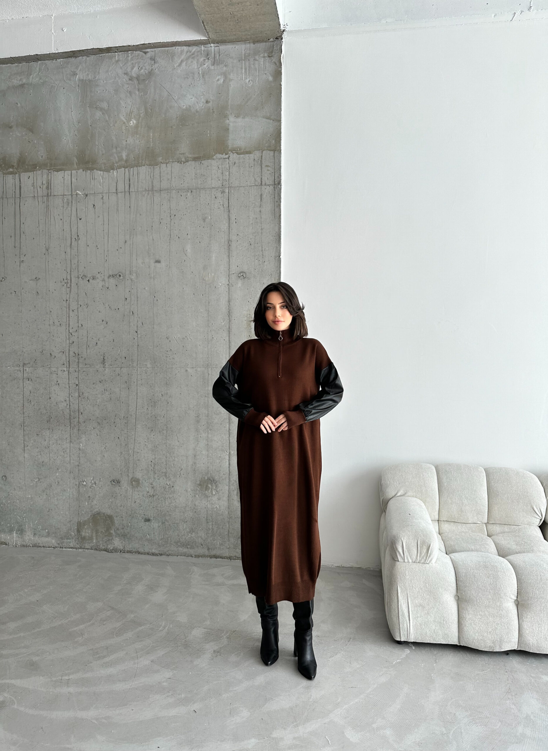 Leather Sleeve Dress