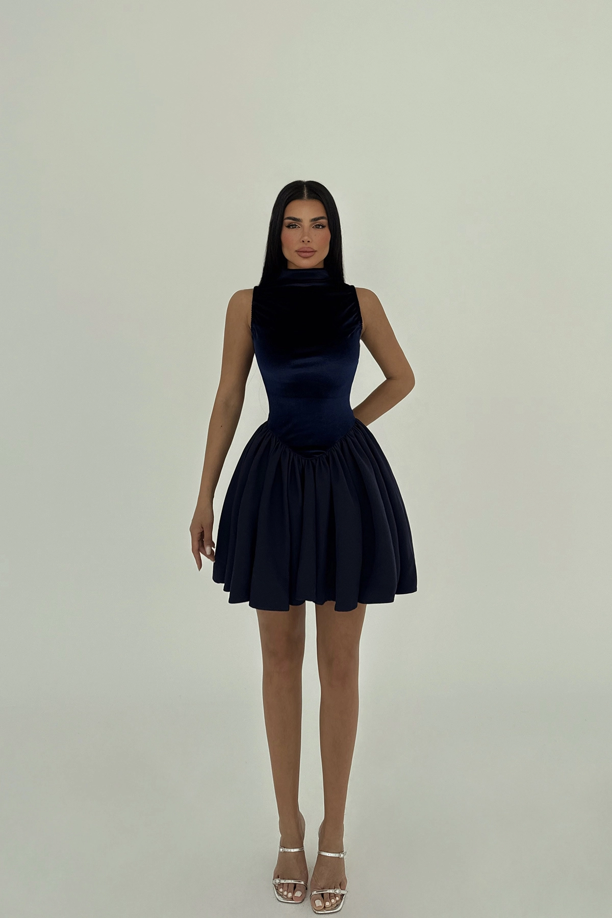 Product Measurements: Navy Blue Begonlia Mini Dress Length: 86 Cm Waist: 29 Cm Chest: 32 Cm.
