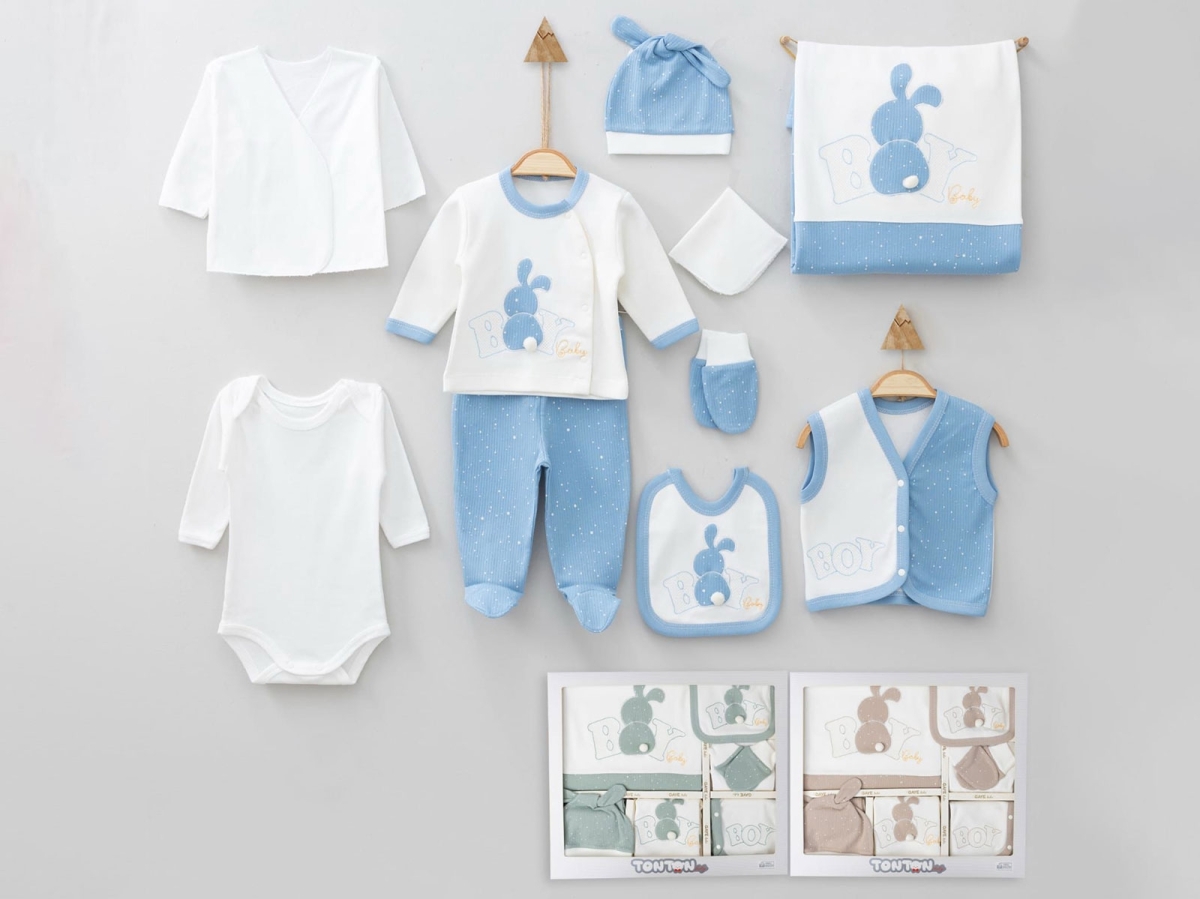 Newborn - B1 - 10 Piece Rabbit Embroidered Boys' Hospital Exit Set