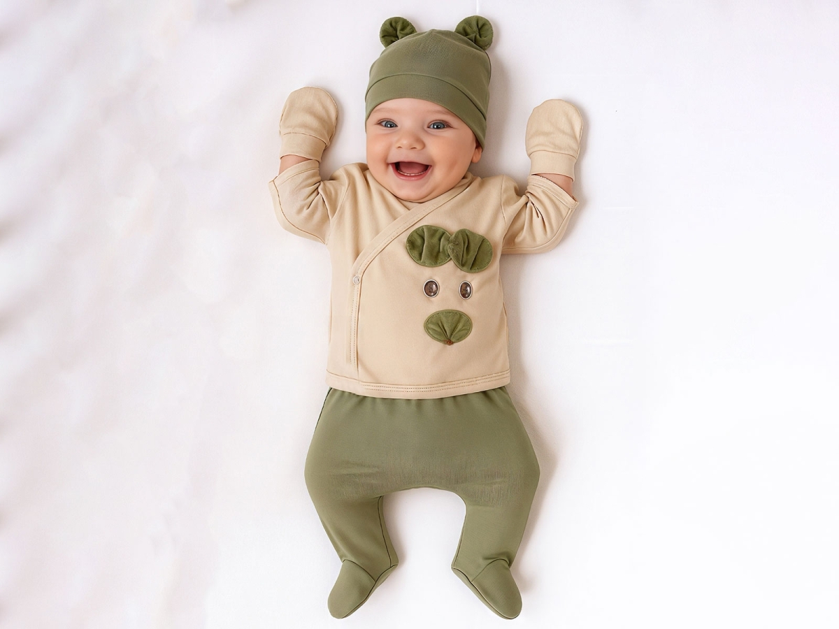 Newborn - B1 - Bear Embroidered 5-Piece Bodysuit Set for Boys