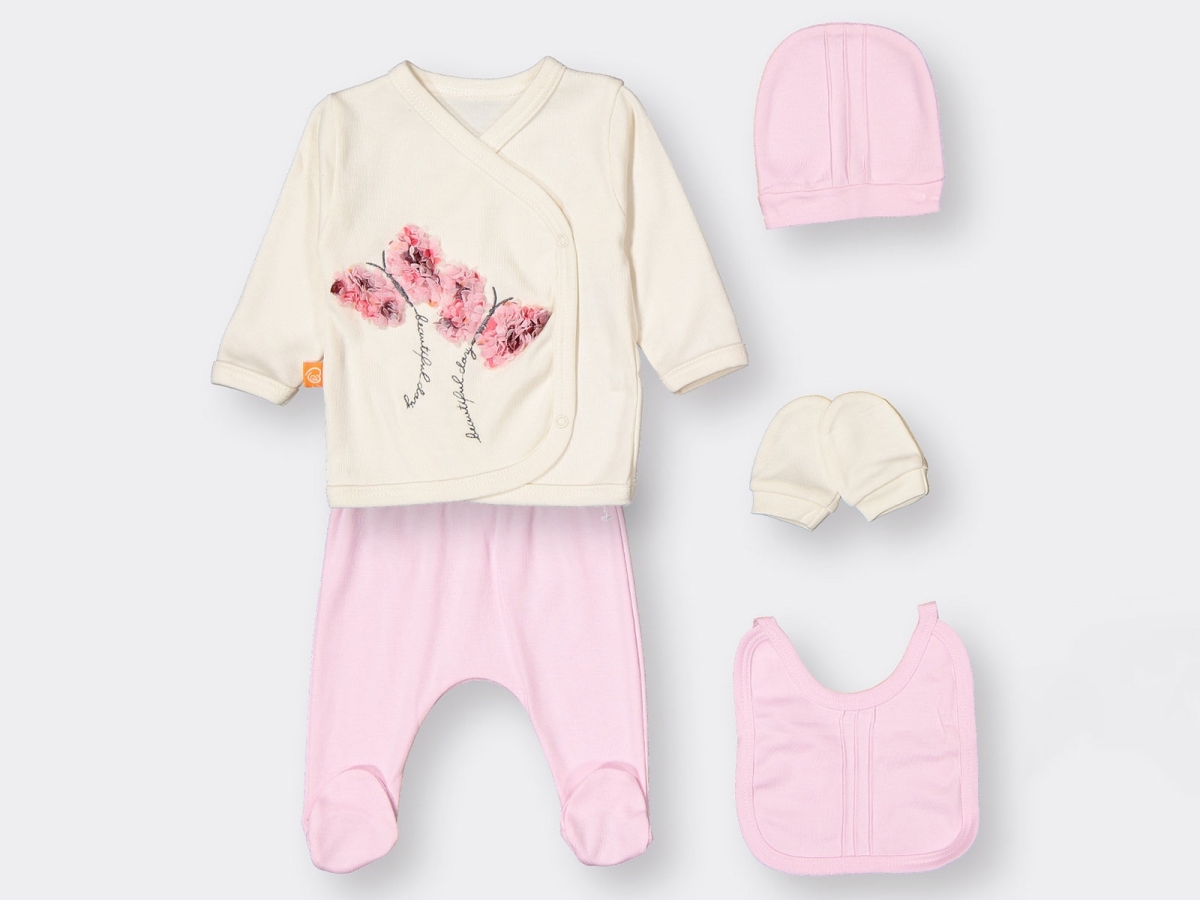 Newborn - B1 - Butterfly Embroidered 5-Piece Girl Hospital Exit Bodysuit Set