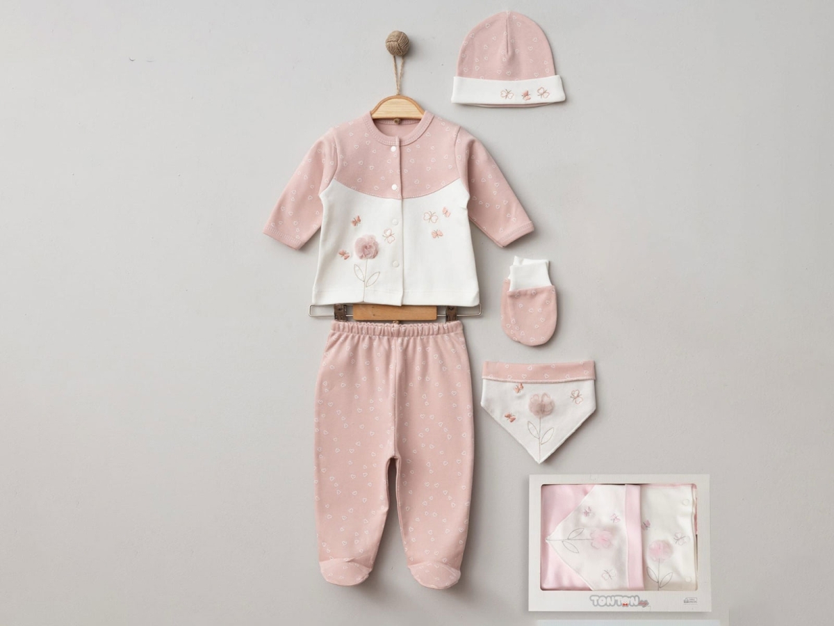 Newborn - B1 - Girl Baby 5-Piece Set with Floral Embroidery