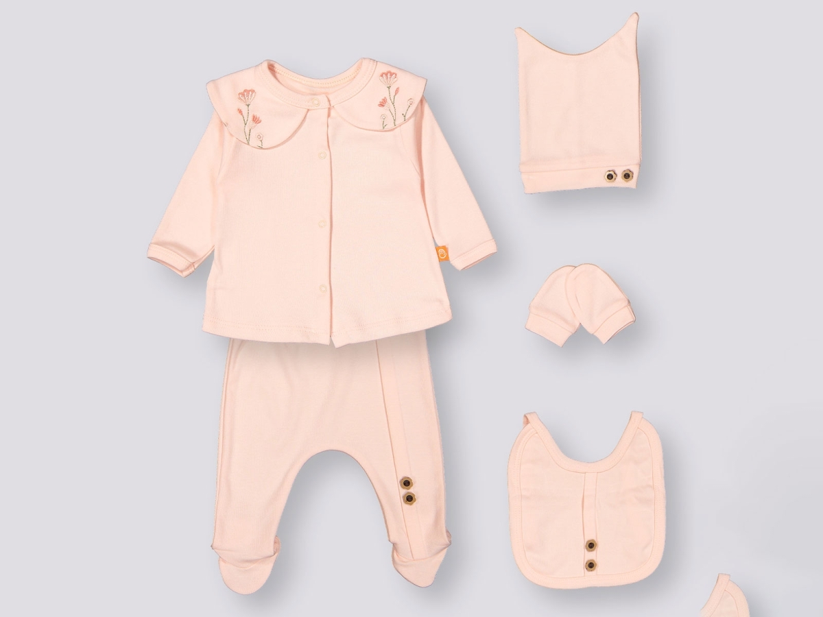 Newborn - B1 - Girl Bodysuit Set with Flower Embroidery