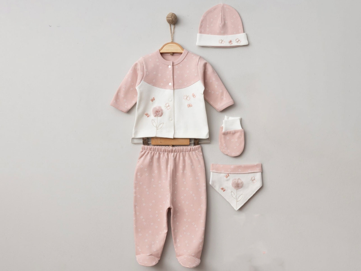 Newborn - B1 - Girls' 5-Piece Set with Floral Embroidery