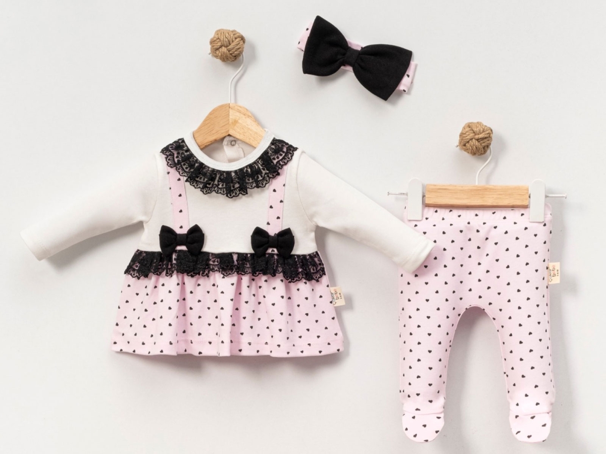 Newborn - B1 - Lace Collar Heart Pattern Girl Baby Set