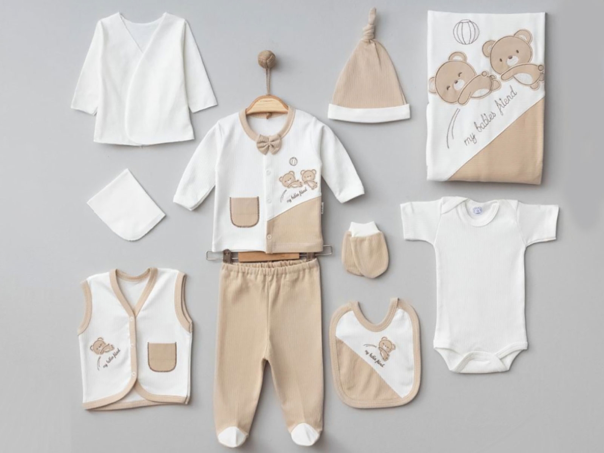 Newborn - B1 - Teddy Bear Embroidered 10-Piece Boys' Hospital Exit Bodysuit Set