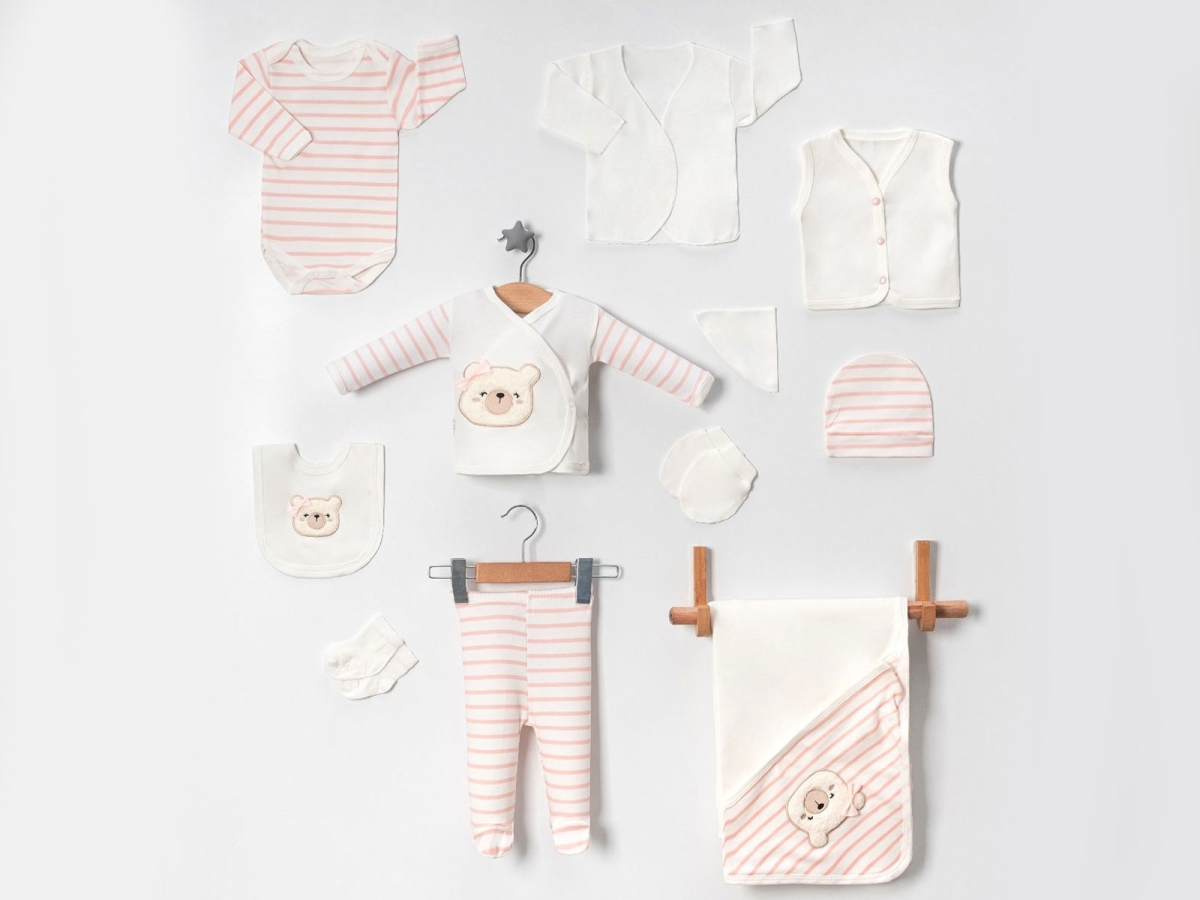 Newborn - B1 - Teddy Bear Embroidered 10-Piece Girl Hospital Exit Bodysuit Set