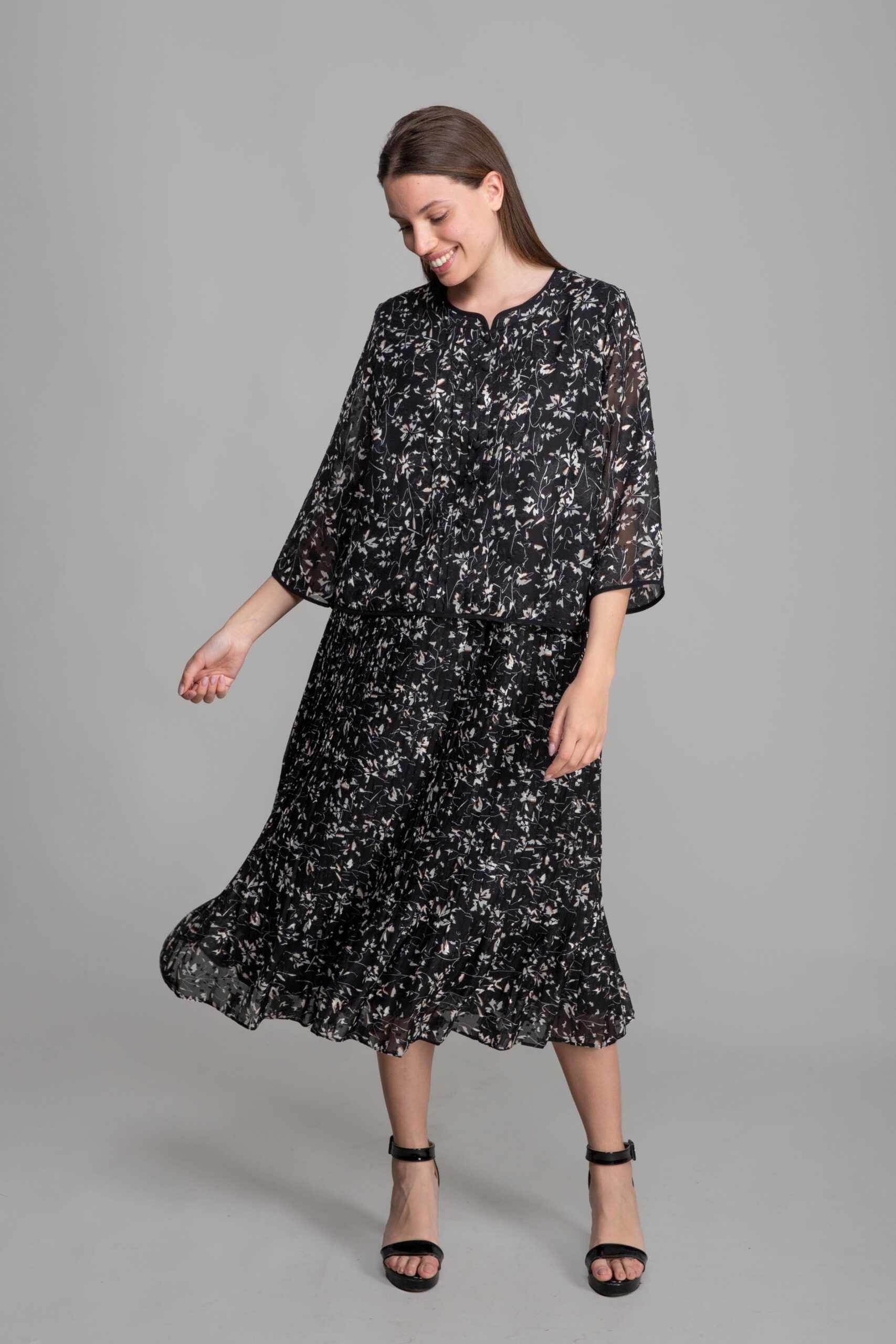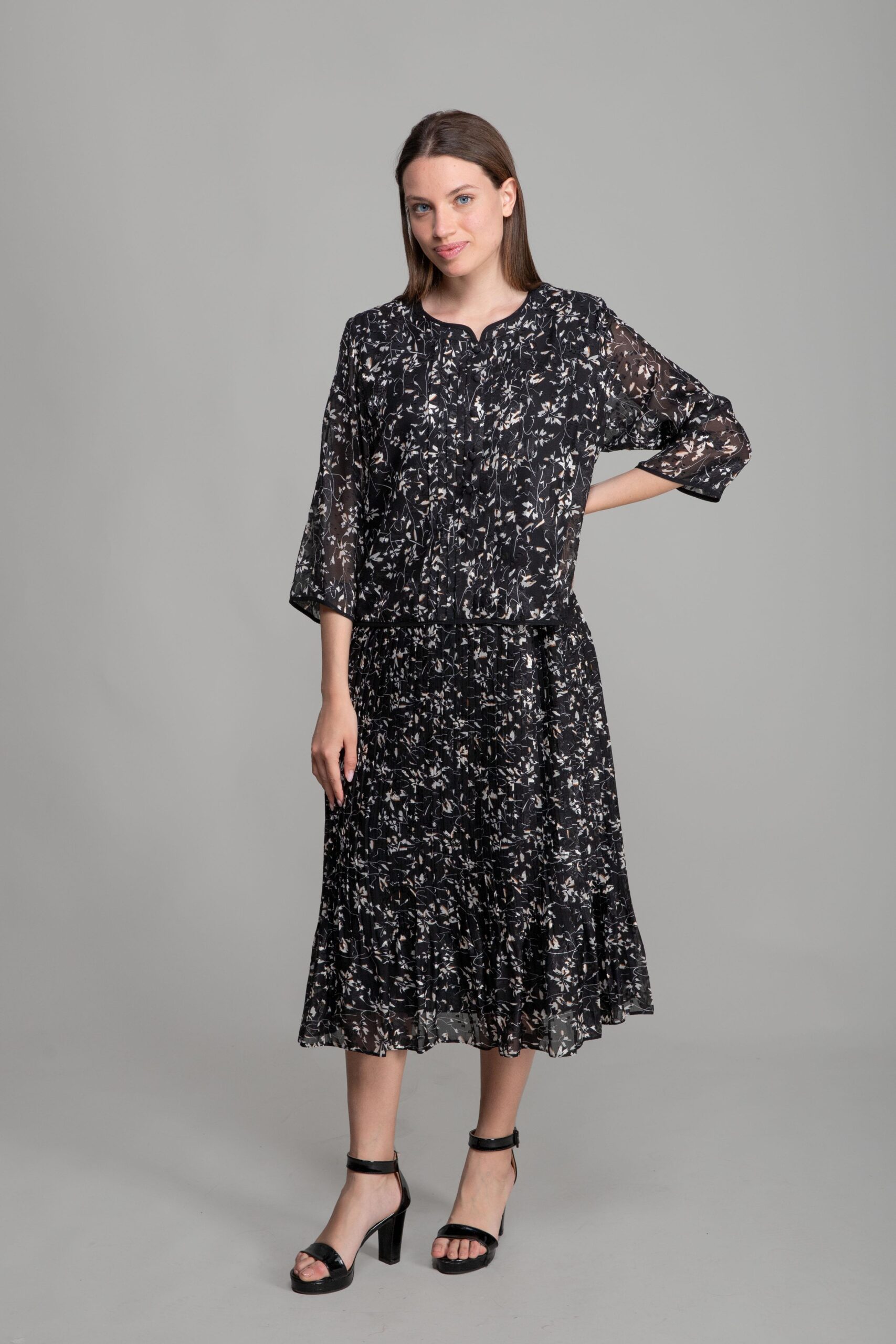 Round Neck Cutout Chiffon Blouse Dress - Multicolor