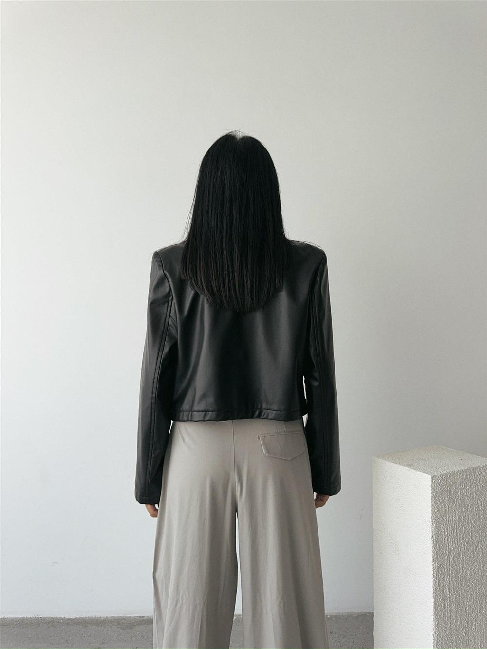 Single Button Leather Crop Jacket