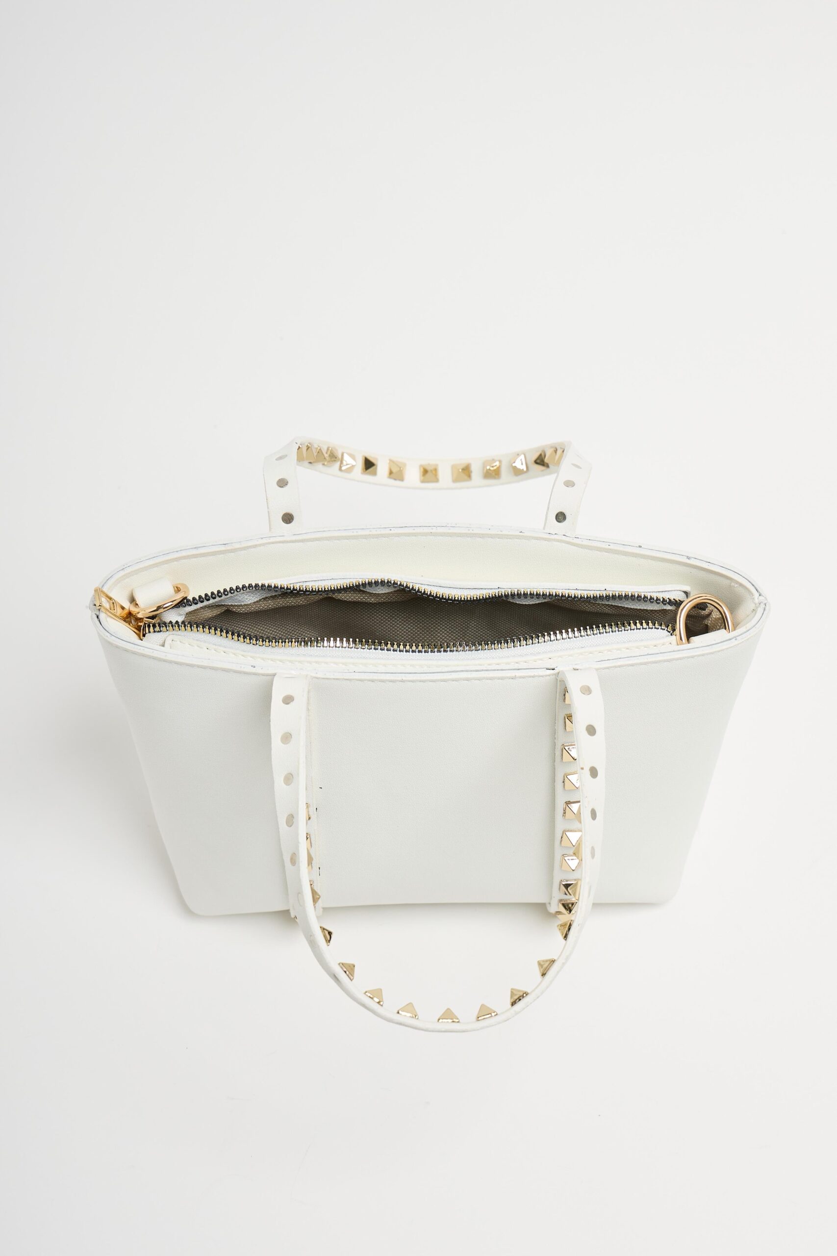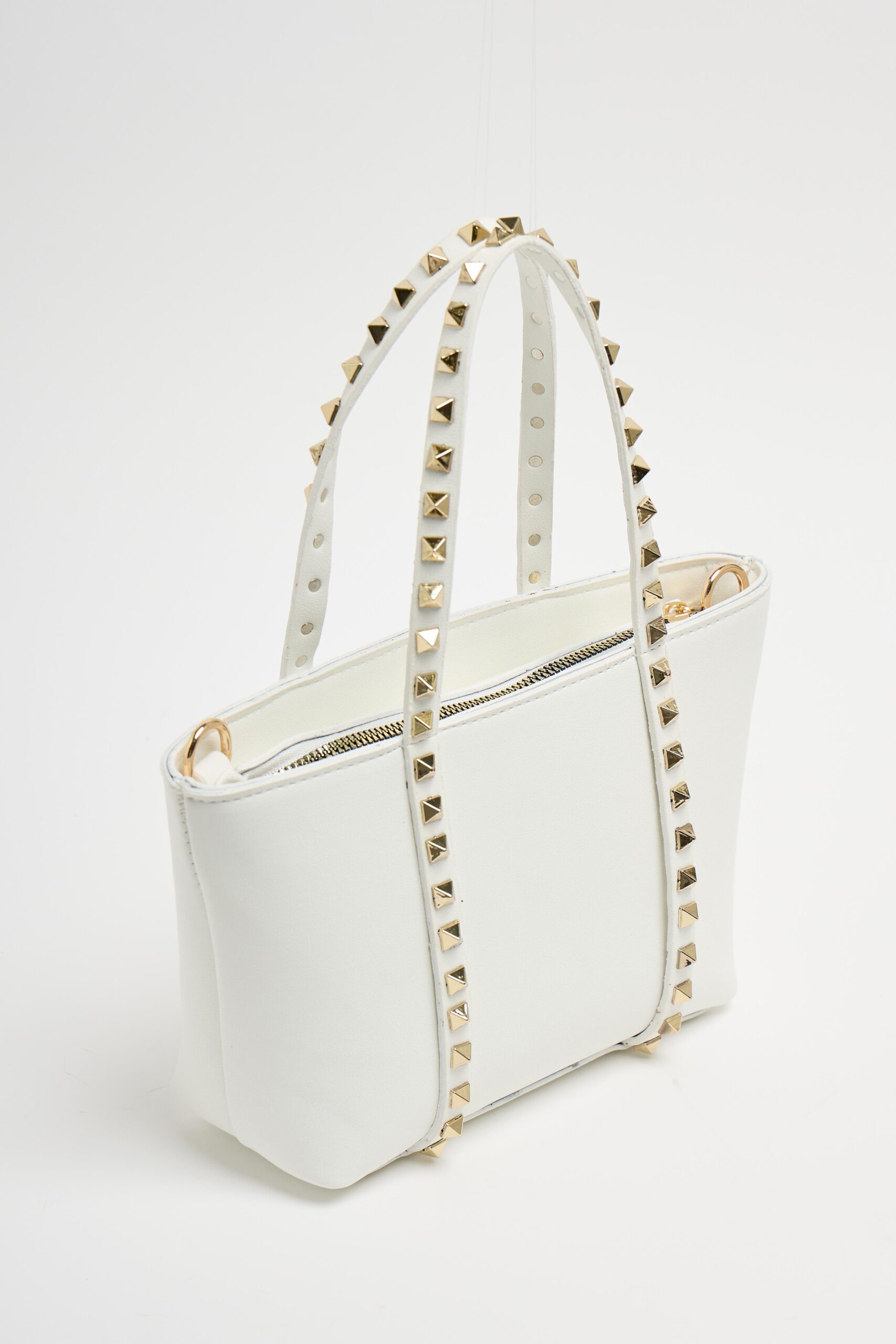 Staple Detailed PU Leather Buckle Hand and Shoulder Bag White