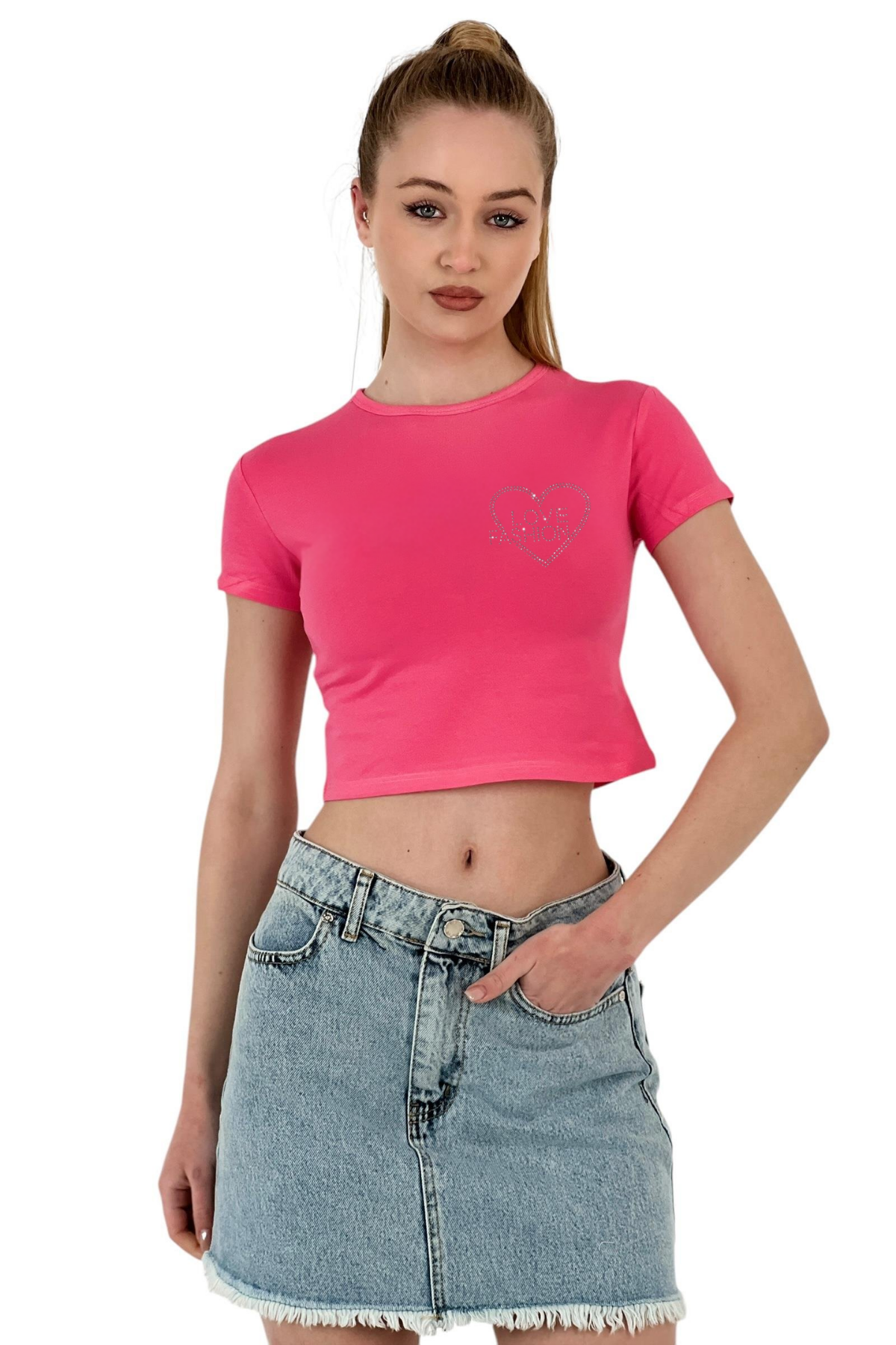 Stone Embroidered “love Fashion” Short T-Shirt —& White