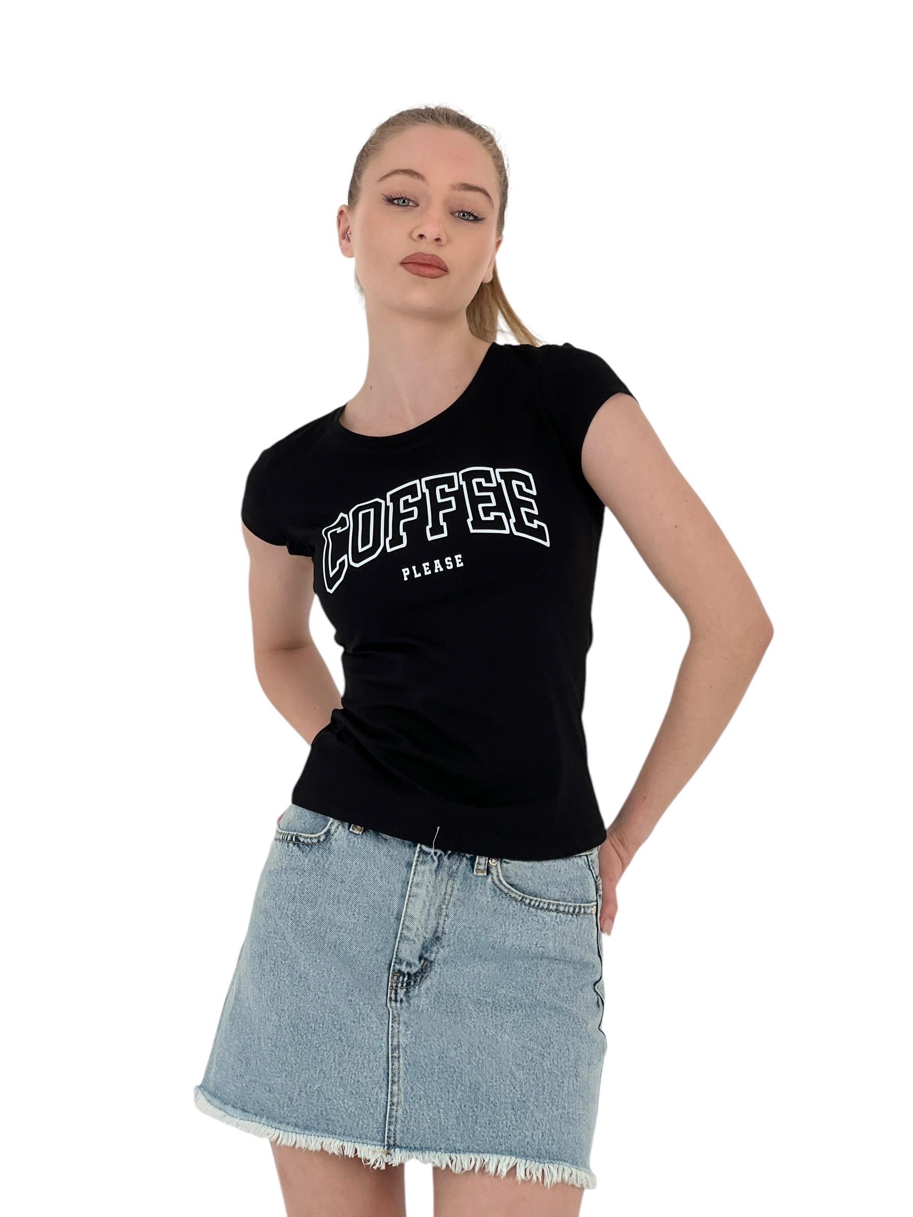 Summer Coffe Print Short Sleeve Skinny White T-Shirt