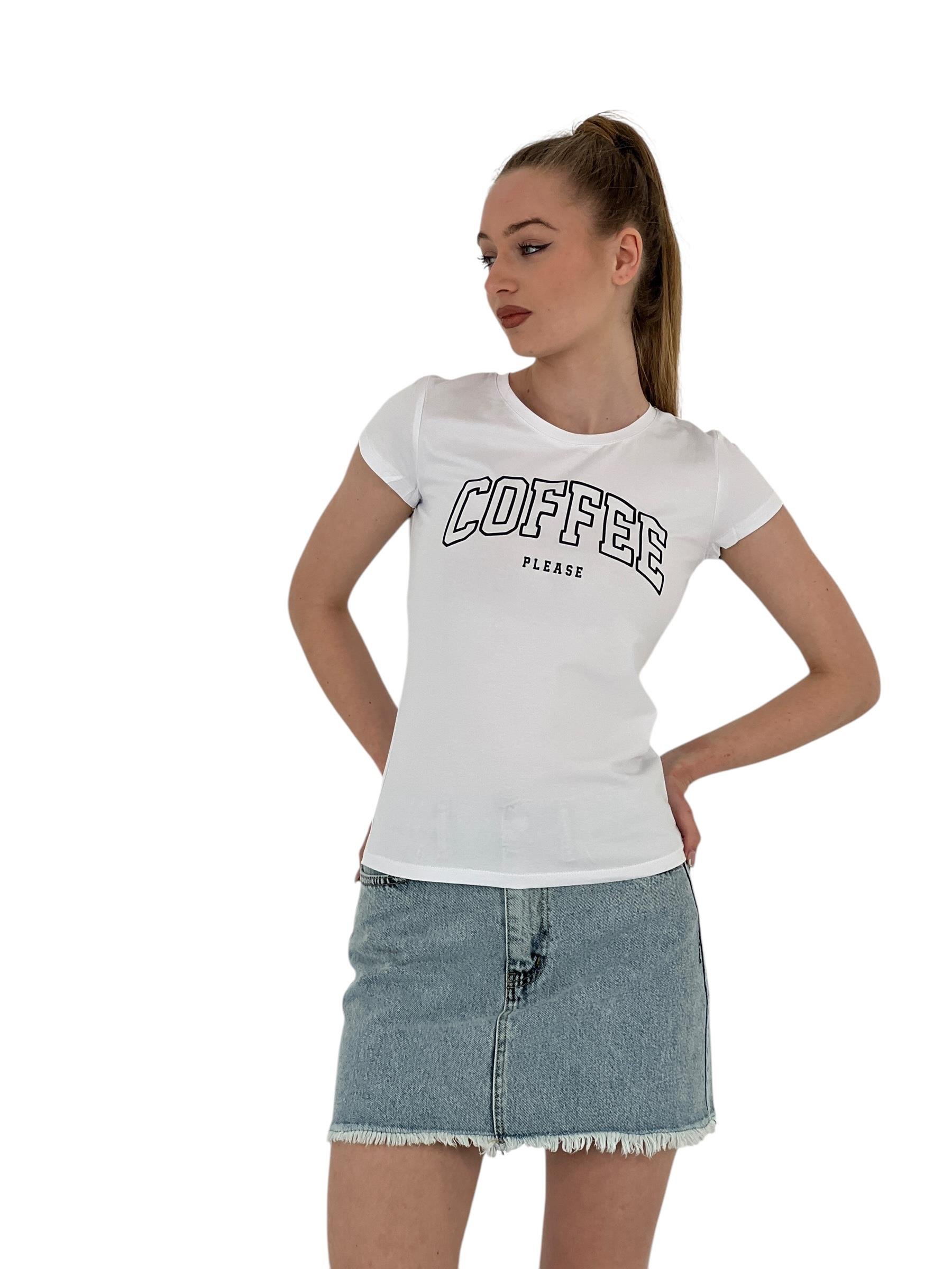 Summer Coffe Print Short Sleeve SkinnyT-Shirt