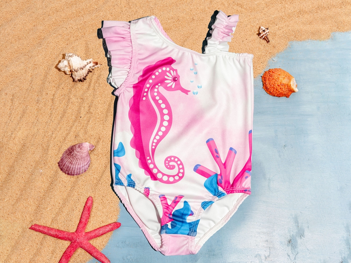 Swimsuit & Board Shorts - B1 - Seahorse Print Girl's Swimsuit