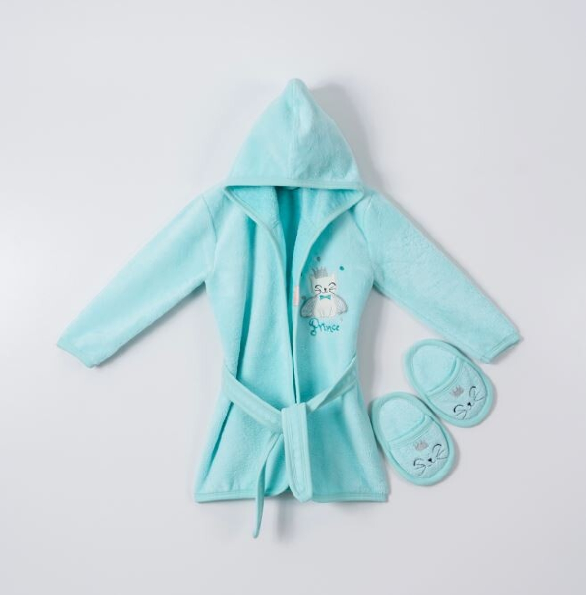 Towel and Bathrobe - Wholesale Baby 2-Piece Robe Set with Slippers 1-4Y 1072-482E