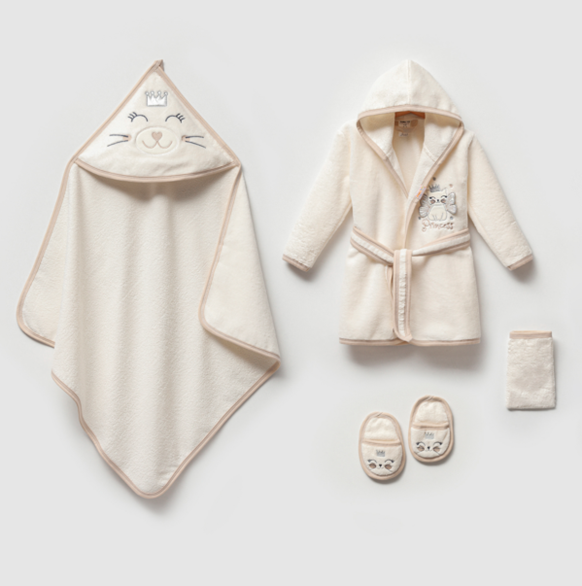 Towel and Bathrobe - Wholesale Baby Girl 4-Piece Bath Set 0-36M 1072-703K