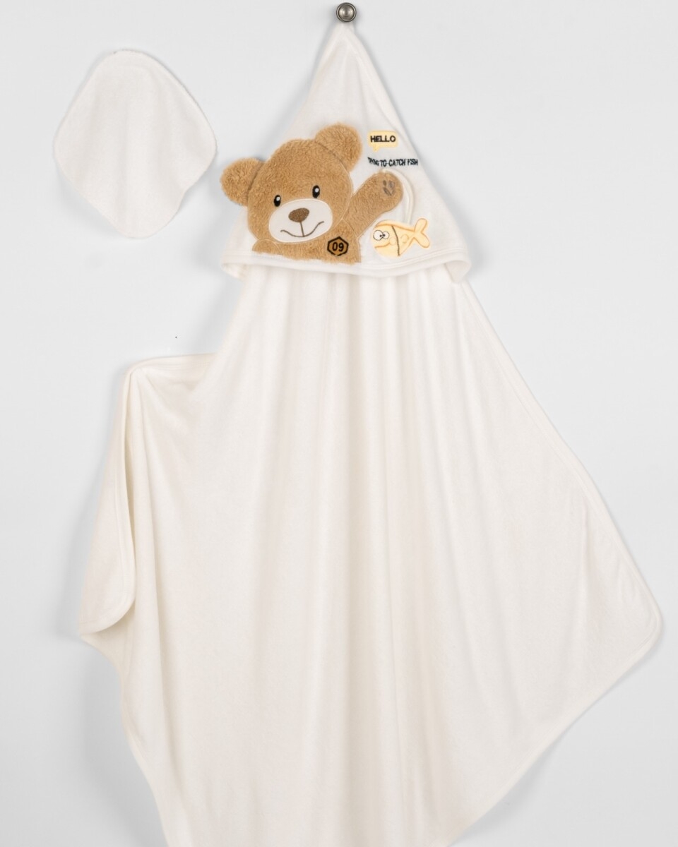 Towel and Bathrobe - Wholesale Unisex Baby 2-Piece Towel and Bath Pouf Set 85x85cm. 2015-9-801