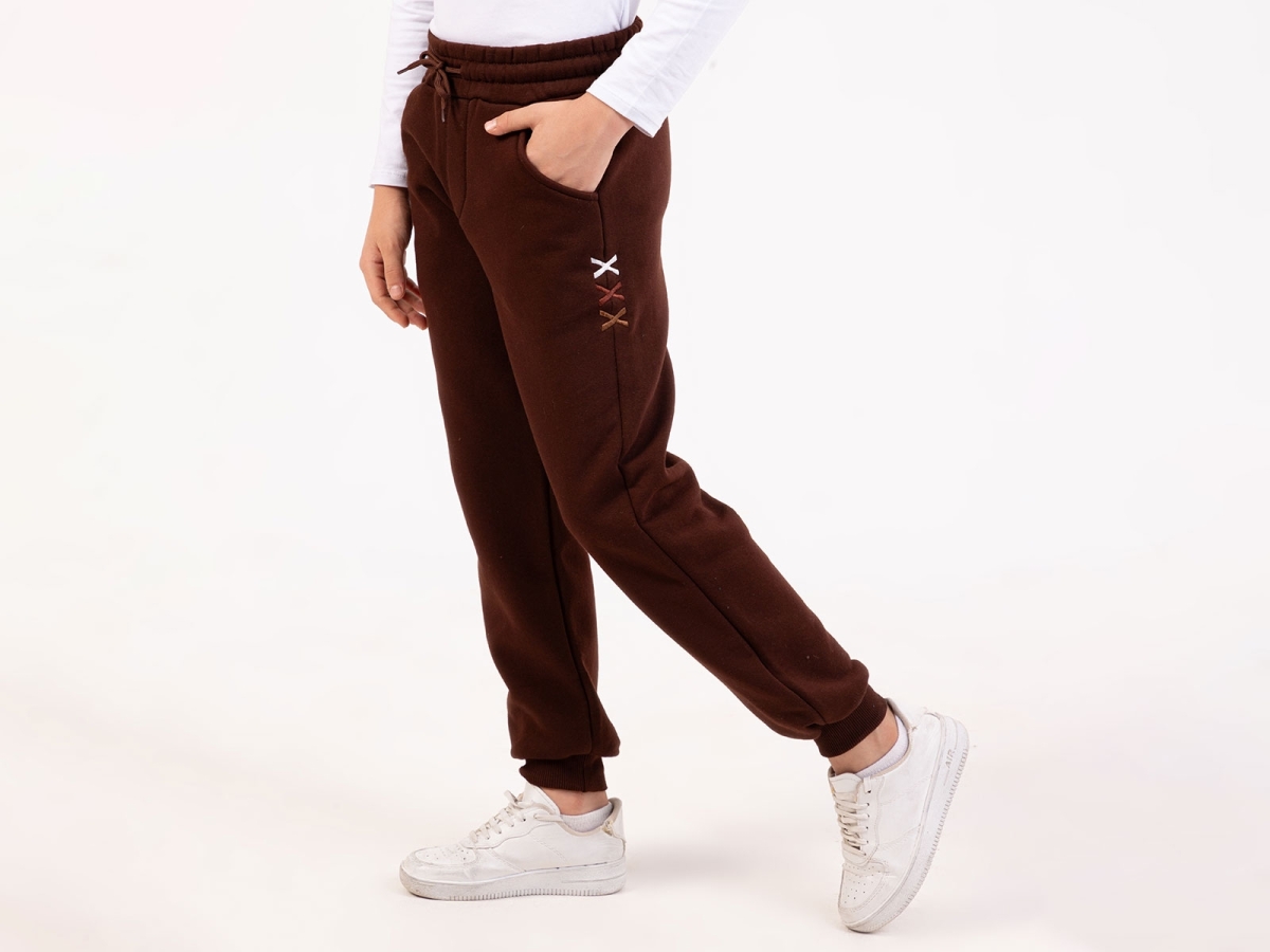 Tracksuit Bottoms - B1 - X Embroidered Girl's Bottoms 3-thread Brushed