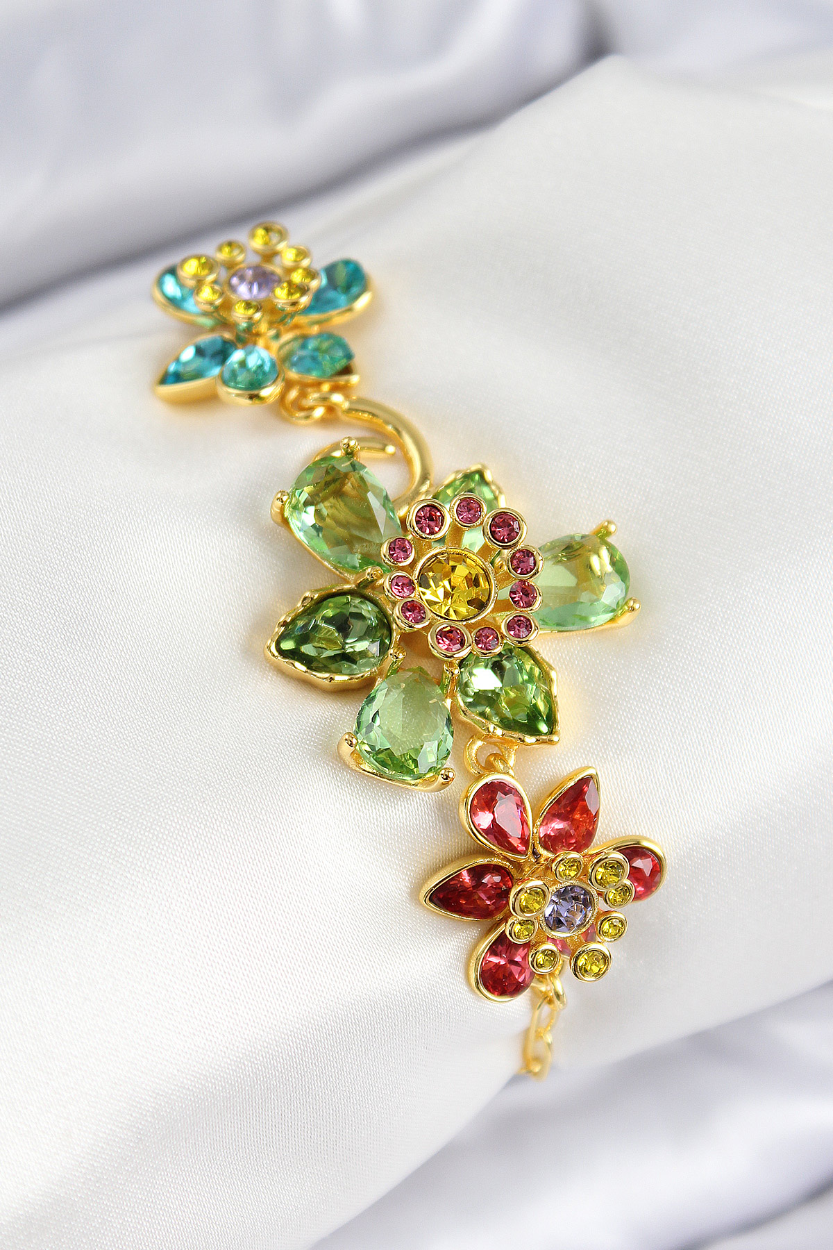 Vip Brass Zircon Stone Flower Pattern Gold Color Women's Bracelet